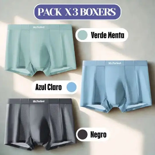 AHORRAS $66.000Mr.Perfect - Boxer Seda de Hielo Hombre Pack x 3 unidades