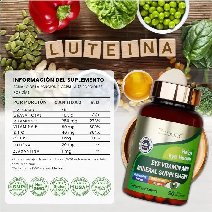 Zooone® mantiene tus ojos saludables y protegidos de la luz azul dañina. Con una fórmula avanzada de luteína, zeaxantina, vitamina E y más, Zooone trabaja para mejorar tu claridad visual y reducir la fatiga ocular, todo de forma natural y sin químicos.
