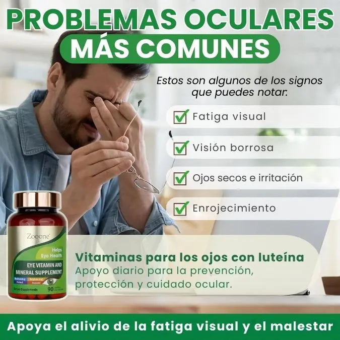 Ya sea que pases mucho tiempo frente a la computadora, leyendo o expuesto al polvo, Zooone® te ofrece una solución integral. Con nutrientes clave que alivian la irritación, el enrojecimiento y la resequedad ocular, que promueven una visión más nítida y precisa.